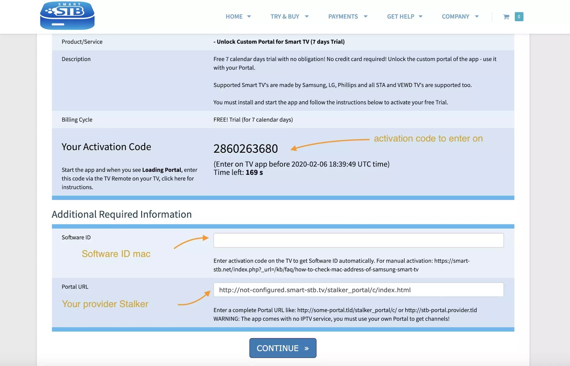 Now that we understand the needed MAC address info, it is time to activate the app trial period. First, log onto the trial activation page of Smart-STB website by opening this URL https://smart-stb.net/index.php?_url=/order/unlock-custom-portal-for-smart-tv